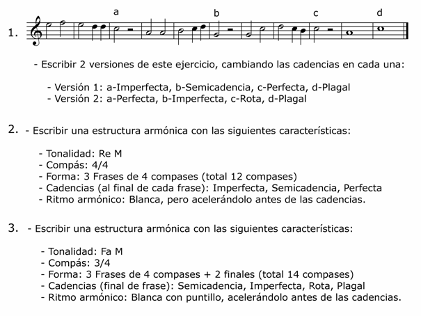 - Normalmente las piezas, o las grandes secciones, finalizan con una cadencia perfecta (o excepcionalmente con una plagal).